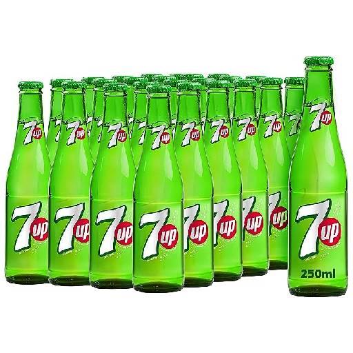 Classic 7UP in 250 ml glass bottles (24 pack) fresh lemon‑lime taste.