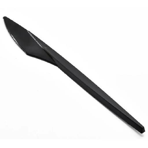 Durable black plastic knives (1000 pcs) ideal for cafés and events.
