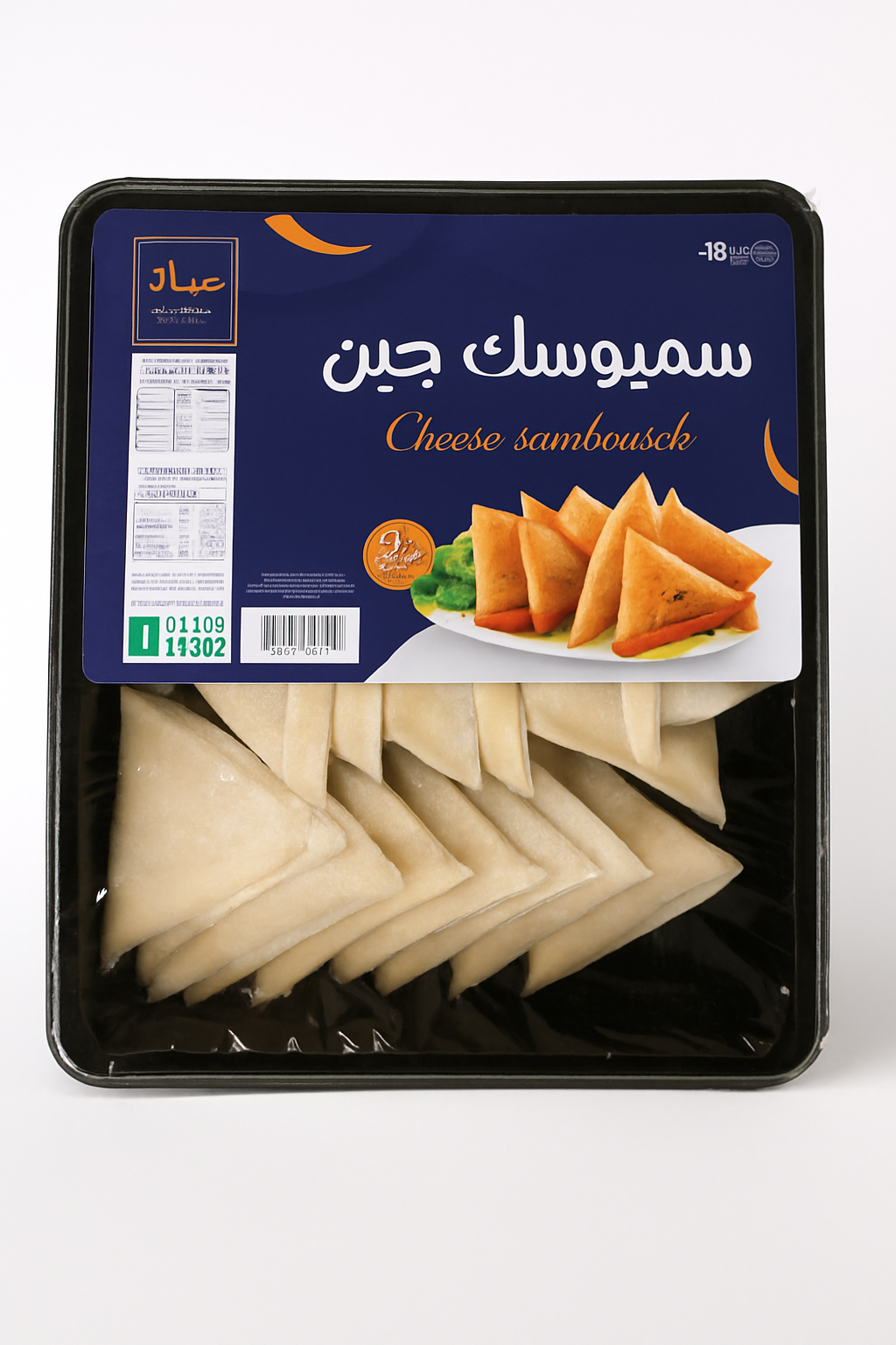 Frozen sambousek filled with creamy cheese in light crispy pastry.