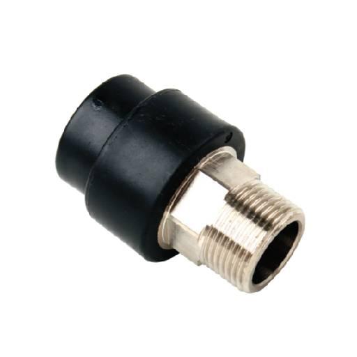 Male threaded adapter for connecting to metal threads.