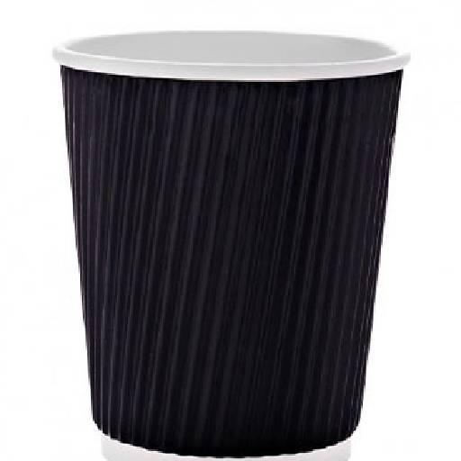 Modern rippled black paper cup (4 oz) offers heat protection and style.