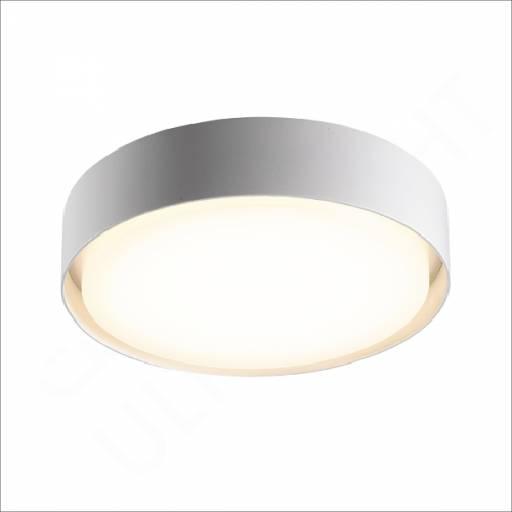 Sleek metal‑rimmed surface fixture delivering comfortable general lighting.